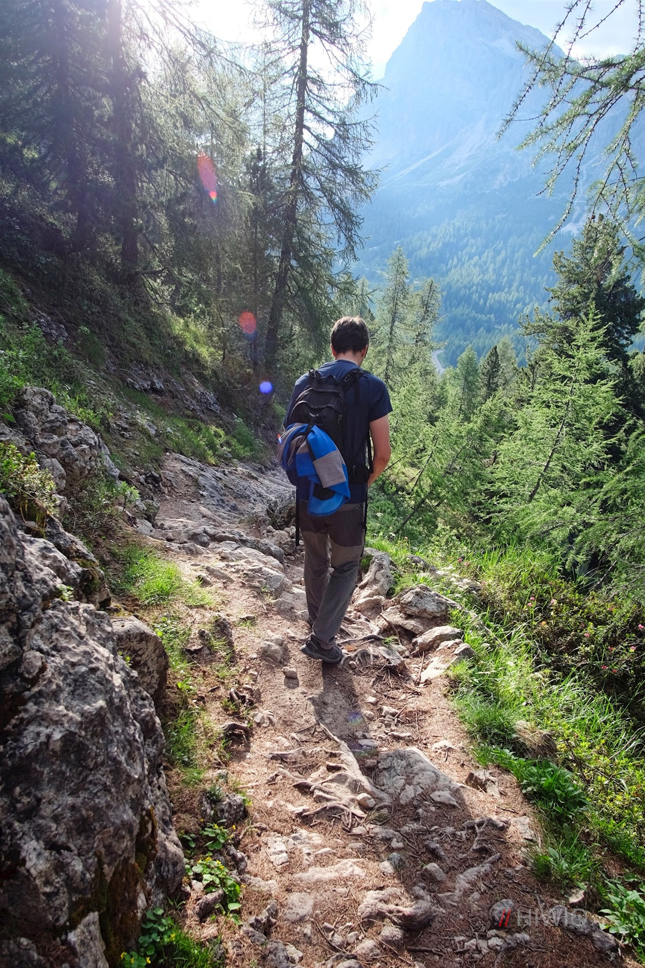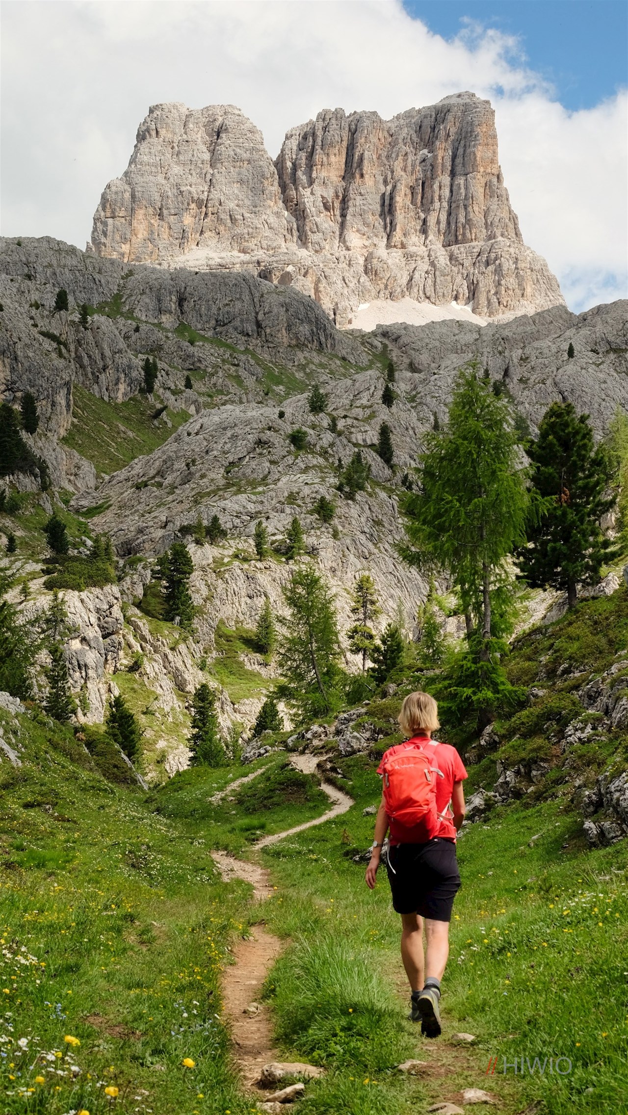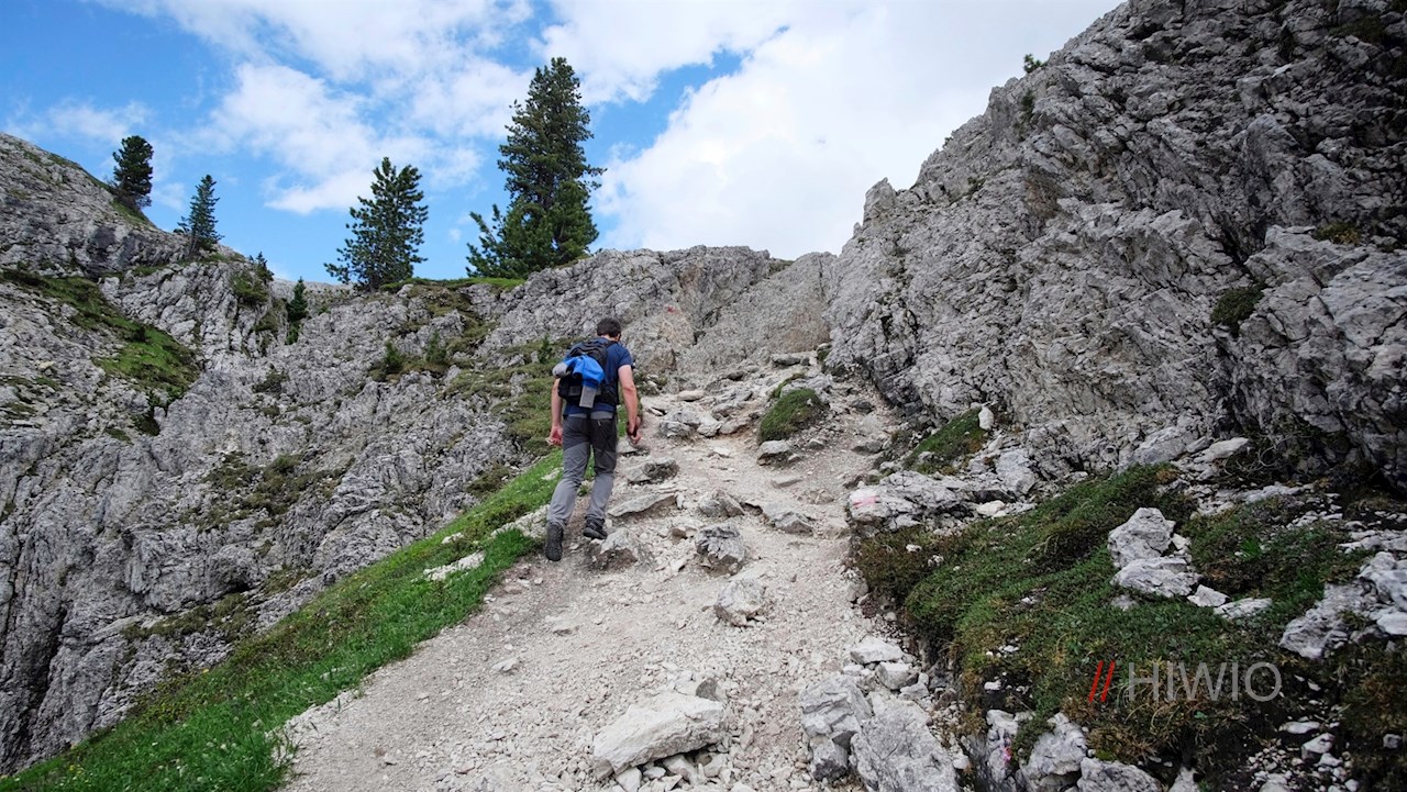 Di fronte all'imponente scenario della Croda Negra, dell'Averau e della Tofana di Rozes, il sentiero, ormai in parte disseminato di sassi e rocce, si snoda su una salita un po' più ripida attraverso i prati di montagna, ricchi di scorci. In essi prospera un'incredibile varietà di delicati fiori alpini.