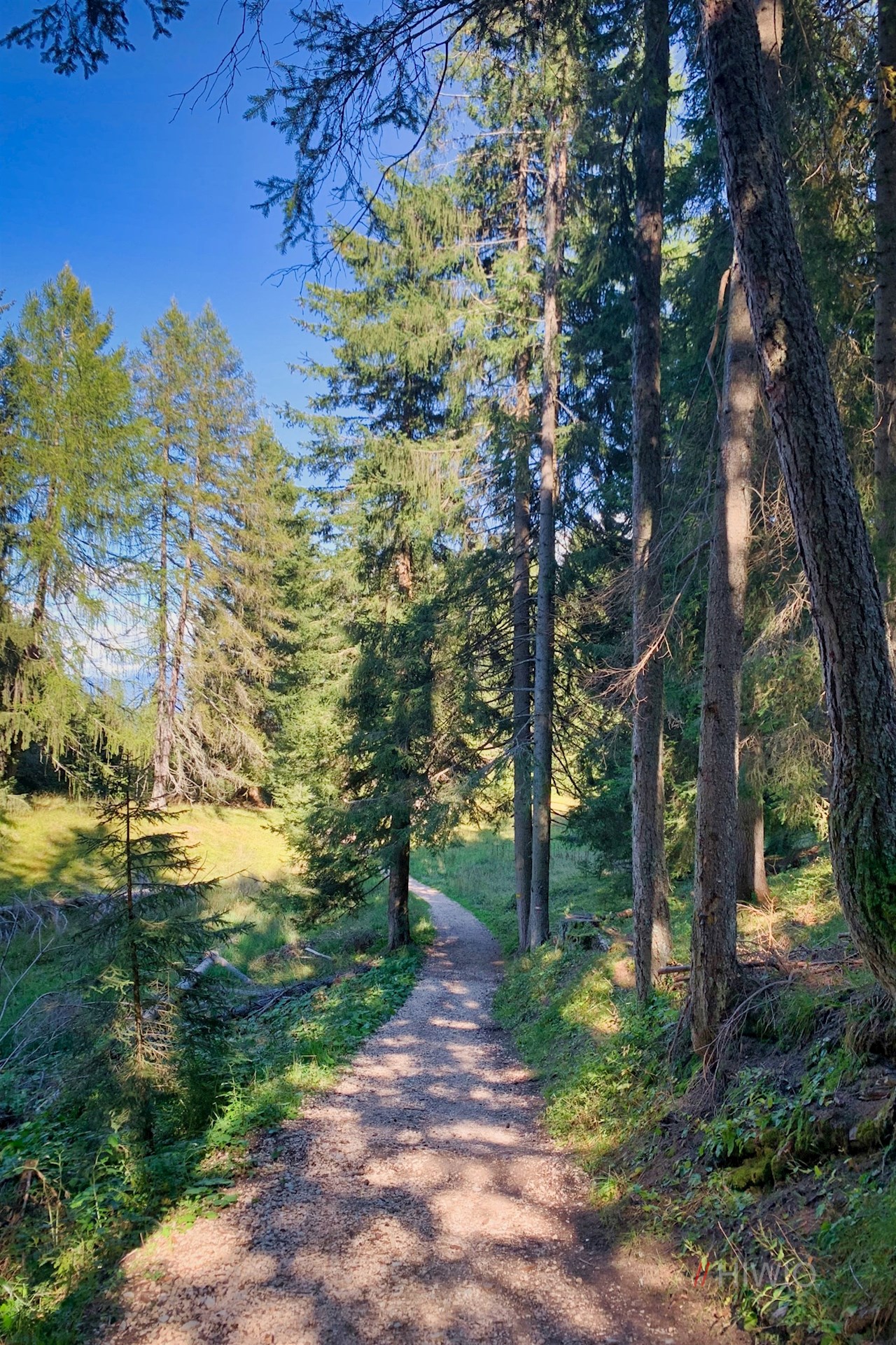 Dapprima conduce in costante salita attraverso il bosco ombroso e infine si immette nel sentiero forestale n. 15 , che scorre dolcemente.