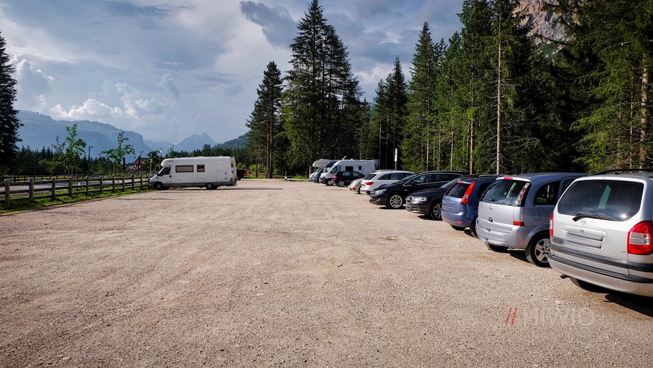 L'escursione alla Malga Valparola (Munt de Valparola) inizia al parcheggio o alla fermata dell'autobus di Sciaré, che si trova tra San Cassiano e il passo Vaparola.