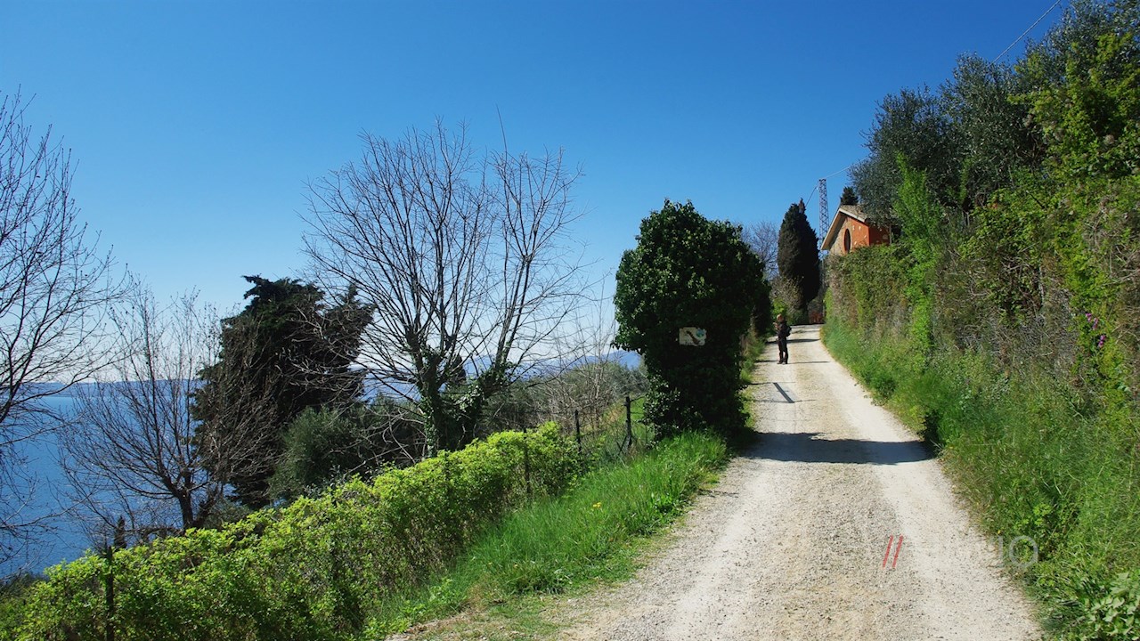Seguendo sempre le indicazioni per il "percorso Eremo dei Camaldolesi", la strada inizialmente asfaltata diventa presto uno stretto sentiero. Alla fine del percorso, ci sono due opzioni: Se preferite l'opzione più breve, seguite il sentiero n. 2, che conduce direttamente alla Rocca.