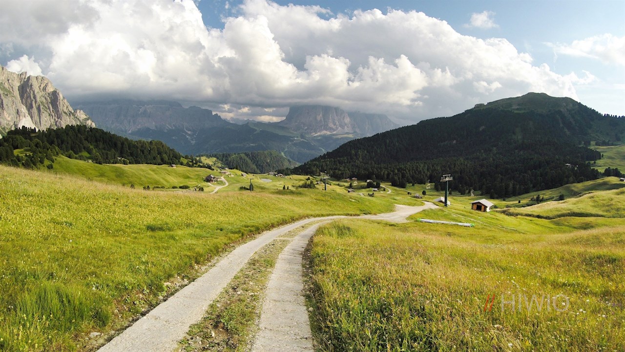 Dietro il rifugio Firenze, il sentiero n. 4 conduce in leggera salita alla vicina stazione a monte della funivia del Col Raiser, dove il sentiero n. 2, quasi pianeggiante, si dirama in direzione del rifugio Fermeda.