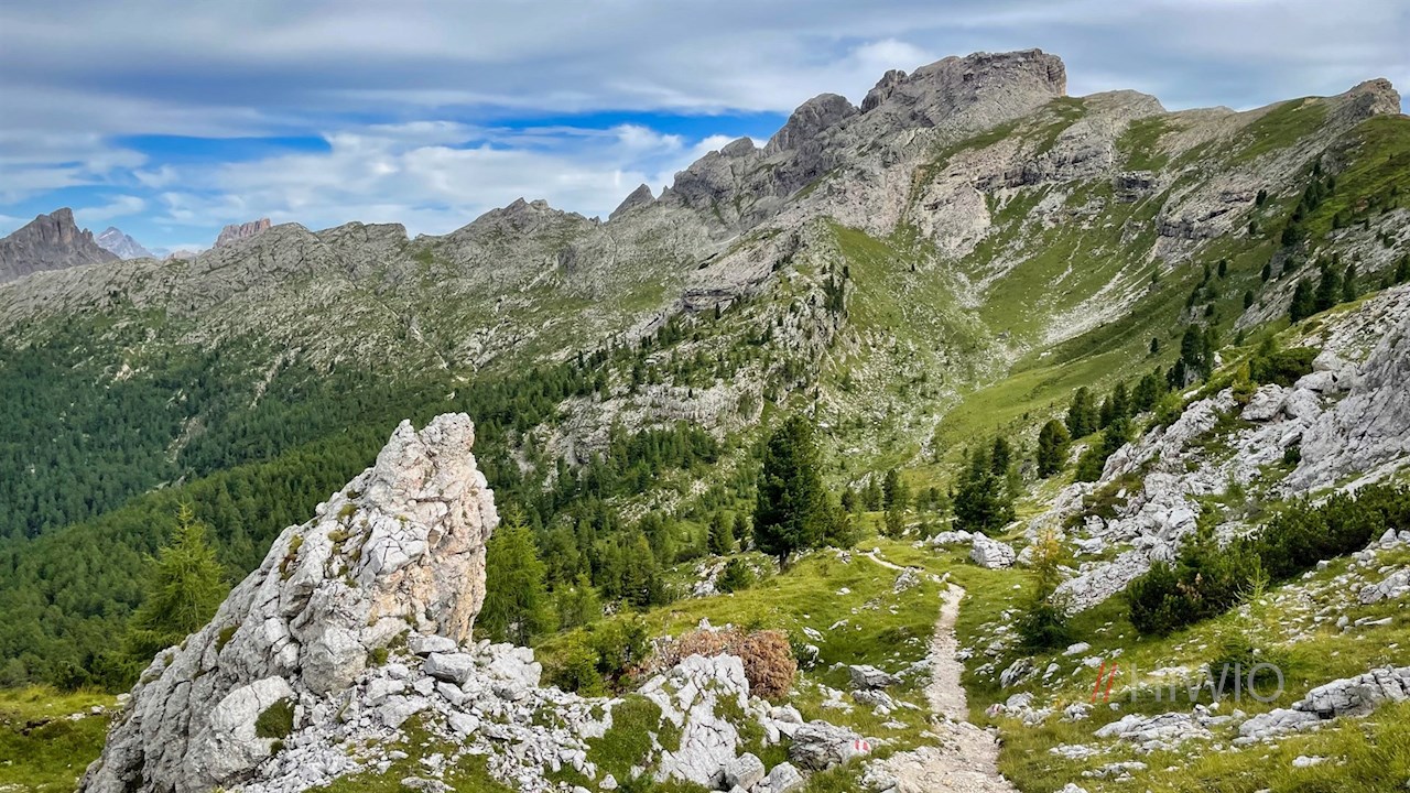 Il sentiero passa prima davanti allo scintillante lago di Valparola e poi serpeggia dolcemente su e giù attraverso il paesaggio ai piedi del Settsass, in parte ricoperto di larici ed erba e in parte di rocce, ghiaioni e massi. Lungo il percorso si aprono panorami di una bellezza mozzafiato sulla val Badia e sulle imponenti montagne circostanti. Particolarmente suggestivi sono il Sassongher, l'altopiano del Gardenacia, il Putia e il vicino Lagazuoi.