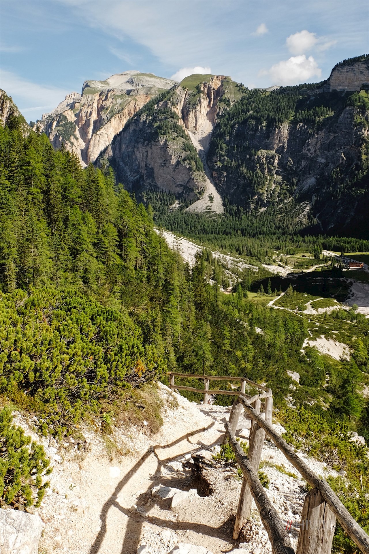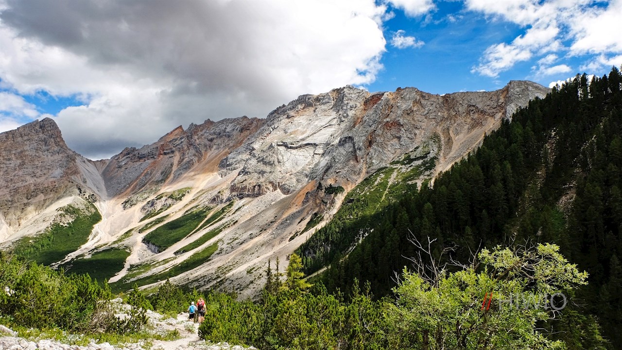 Seguendo il sentiero numero 7 in direzione di Fanes, si può salire verso il fondovalle su un ampio sentiero di ghiaia a serpentina oppure su un sentiero che si dirama a destra e che all'inizio è piuttosto ripido.