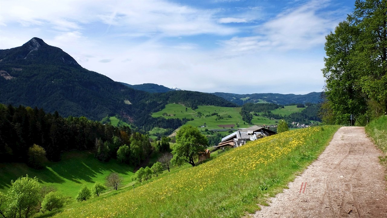 Mantenendo il sentiero numero 1, dopo cinque minuti l'escursione passa accanto al lago Huber Weiher e poi continua attraversando un bosco ombroso fino all'invitante malga Tuffalm. La malga gode di grande popolarità tra gli abitanti del luogo e i turisti, grazie al suo ampio prato, la vista spettacolare sullo Sciliar e al cibo gustoso servito sulla soleggiata terrazza.