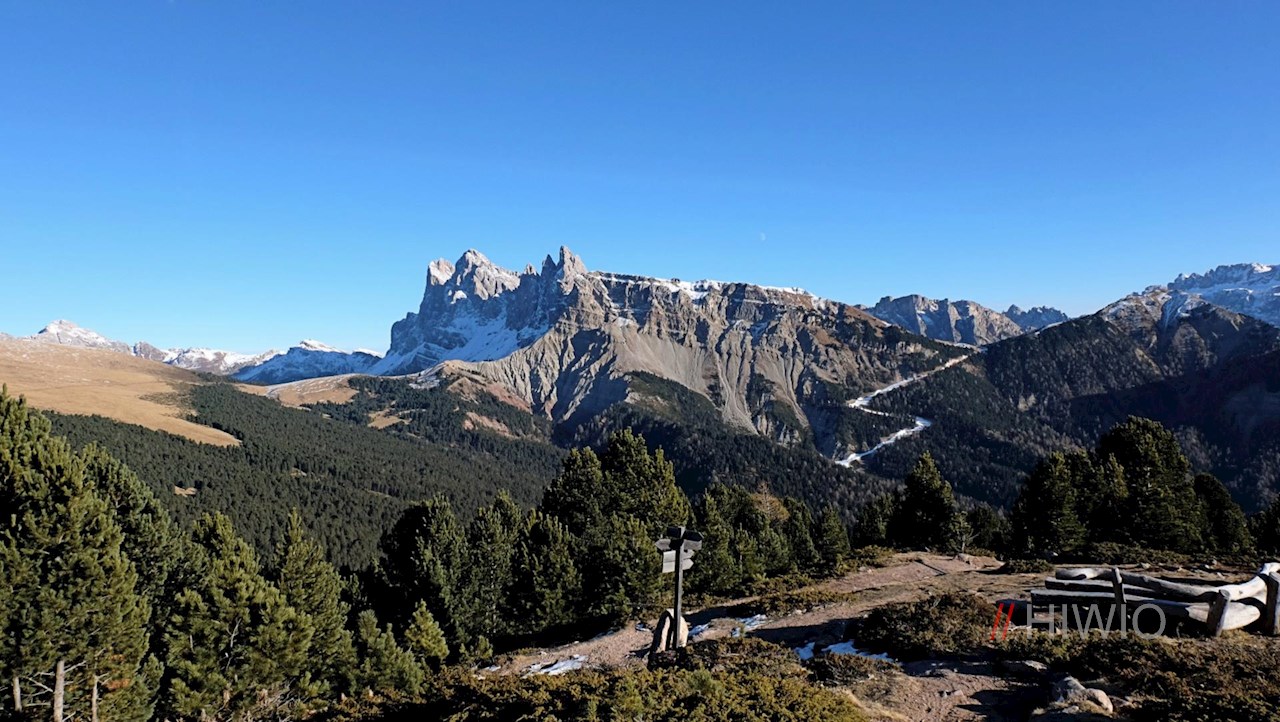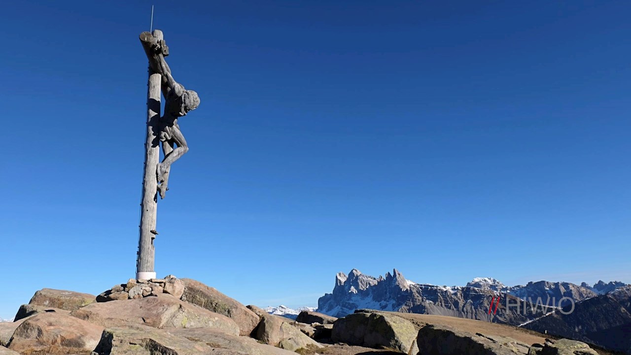Dopo altri 20 minuti si raggiunge l'imponente croce di vetta della Resciesa Di Fuori, che offre un panorama mozzafiato. Le Odle della Val Di Funes, il massiccio del Sella, lo Sciliar, il Sasso Lungo ed il Sasso Piatto, sembrano a portata di mano.