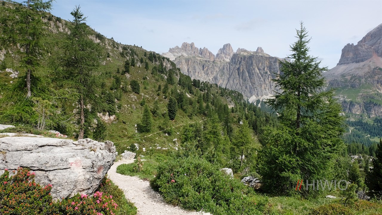 A circa 2.000 m sul livello del mare si raggiunge il limite della vegetzione arborea, dietro la quale si estende un ghiaione del monte Averau dall'aspetto quasi surreale. Al prossimo bivio si prendere il sentiero n. 439. Porta all'ormai vicino rifugio Scoiattoli collocato davanti allo sfondo mozzafiato della Tofana de Rozes, delle Cinque Torri, dell'Averau e le altre cime dolomitiche circostanti.