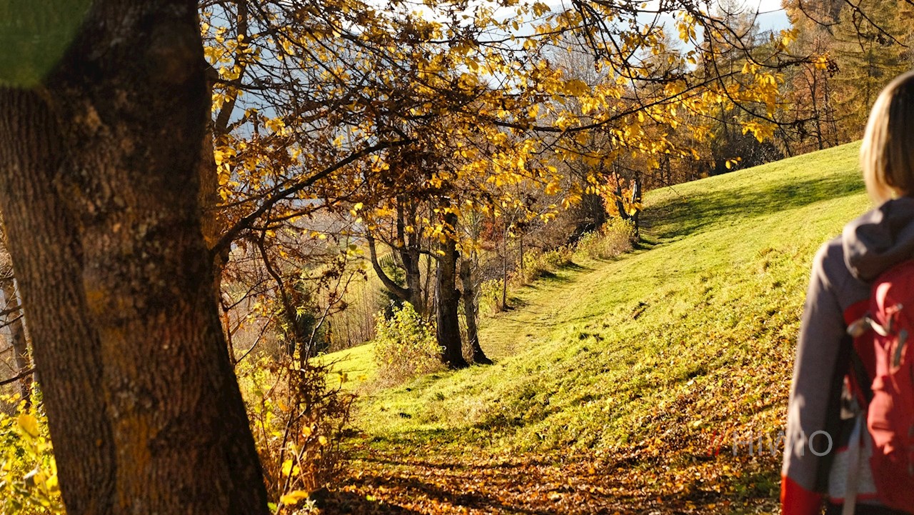 Alle sue spalle, il sentiero panoramico attraversa dolci pendii di bosco misto. A circa metà del percorso, un piccolo sentiero di collegamento si dirama a sinistra, scendendo verso il già noto Sunnseitnweg. Seguite questo sentiero fino a San Pietro, dove potrete concludere l'escursione in uno degli invitanti caffè.