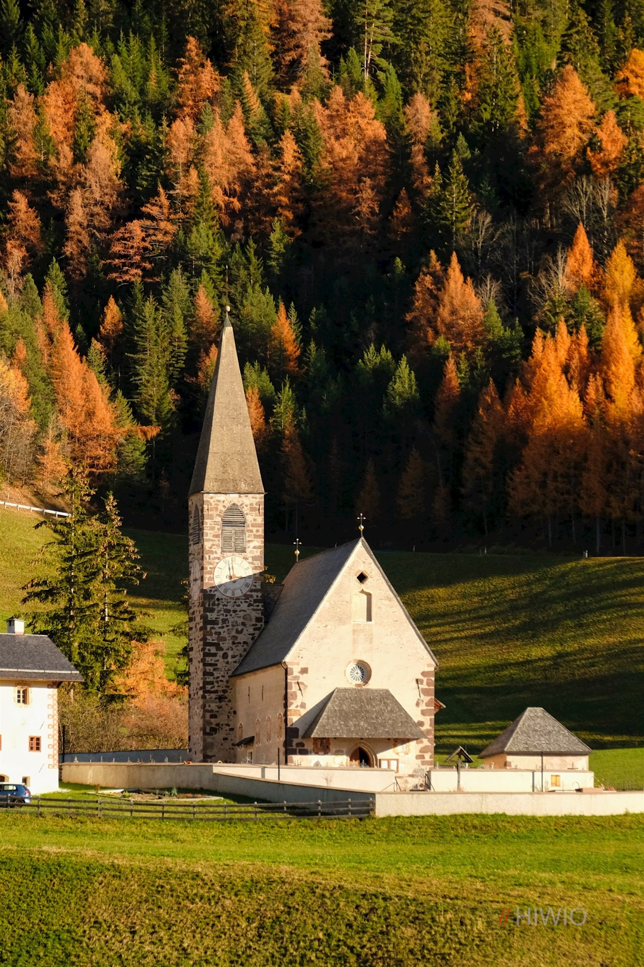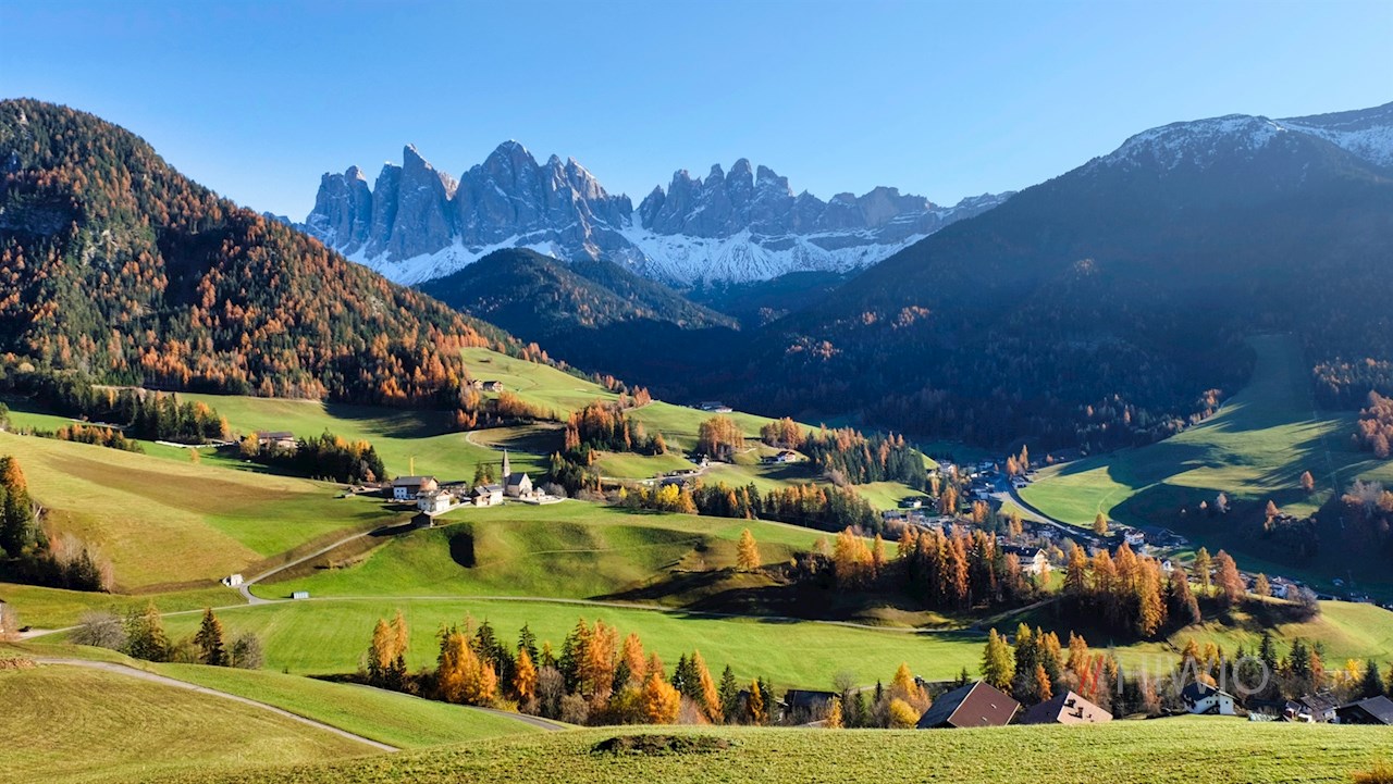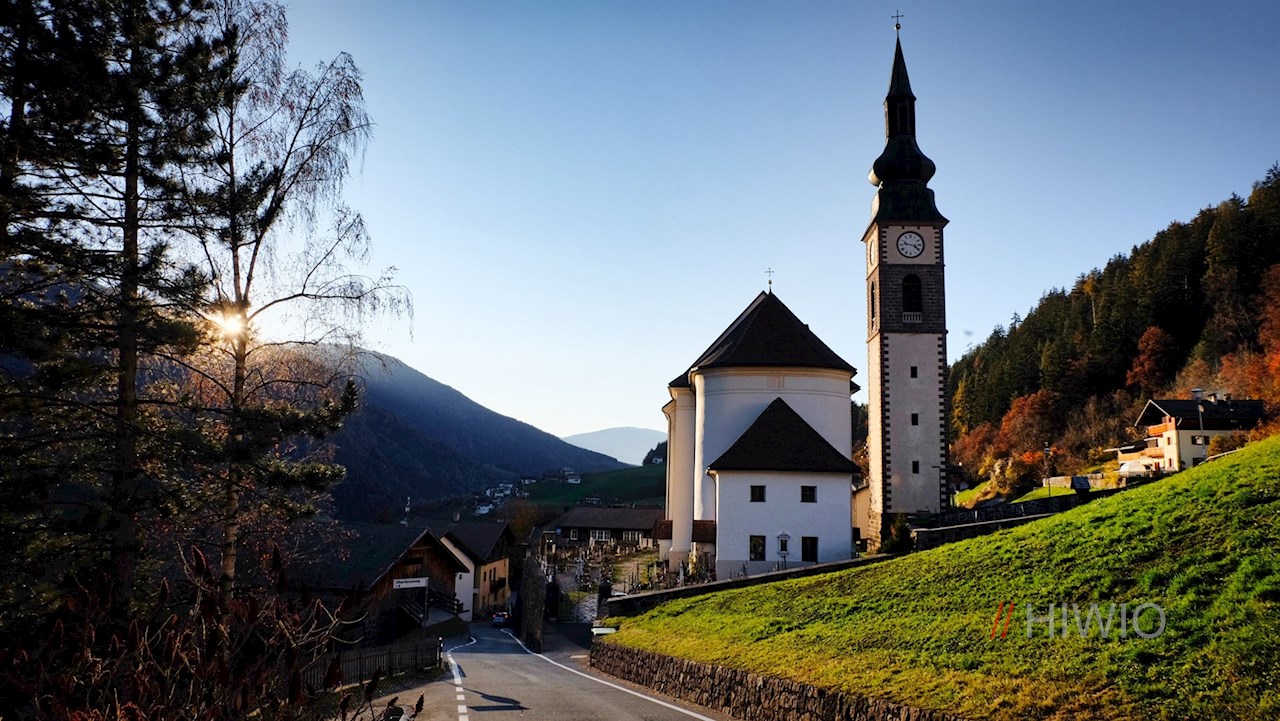 L'escursione sul sentiero Sunnseitn inizia a San Pietro, il soleggiato villaggio principale della val di Funes. Sotto la chiesa parrocchiale ci sono alcune possibilità di parcheggio.