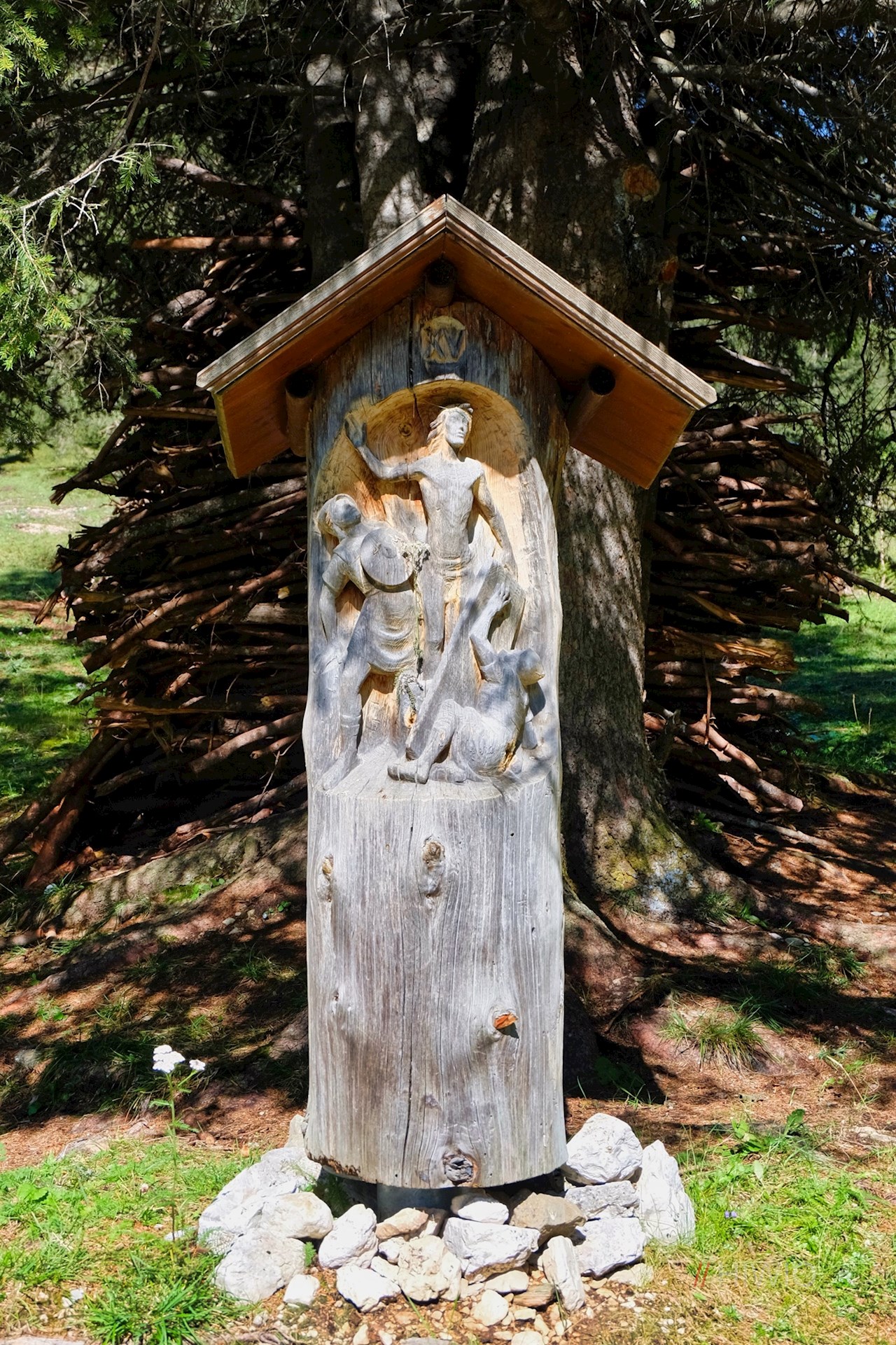 Una via Crucis contemplativa e pittoresca conduce dalla Vallunga a Daunei e Selva di val Gardena. Lungo il percorso, 15 stazioni artisticamente scolpite raccontano la passione di Cristo.