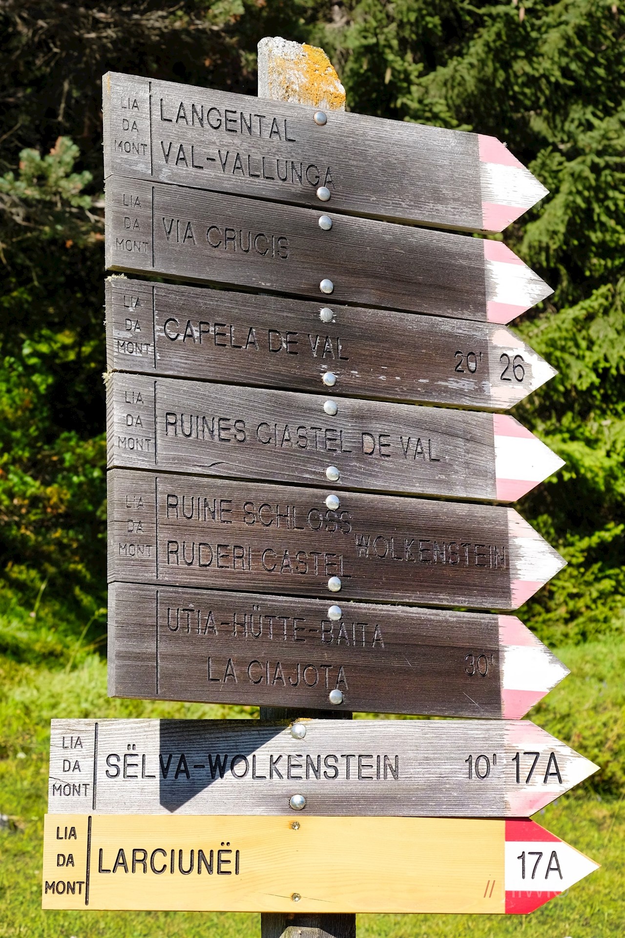 A circa metà del percorso, un piccolo sentiero si dirama sulla destra per raggiungere la Selva di val Gardena. Se lo si desidera, si può fare una breve deviazione verso i resti di questo castello ancestrale della nobile famiglia tirolese Wolkenstein-Trostburg, il cui rampollo più famoso fu il famoso menestrello, diplomatico e consigliere Oswald von Wolkenstein, annidato vicino alle pareti rocciose. Il sentiero conduce in prossimità delle rovine, il cui accesso è tuttavia vietato.