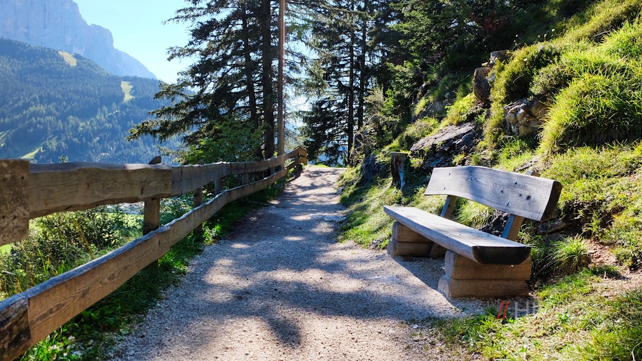 All'ultima stazione, che in realtà è la prima, il sentiero escursionistico n. 17A si dirama verso la Selva di val Gardena in un bellissimo punto panormico. Si unisce alla strada asfaltata già nota che riporta al parcheggio per escursionisti della Vallunga.